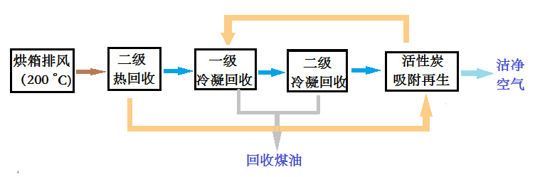 3、系統(tǒng)采用二級冷凝回收+活性炭吸附再生,利用回收熱量對活性炭脫附再生,含有少量煤油的再生蒸汽返回冷凝循環(huán),回收率大于95%,排風濃度小于100mg/m3。